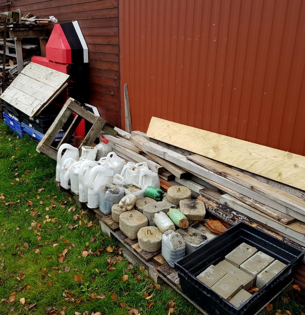 Taky jsme začali výrobu nových závaží ze zámkové dlažby a jak se ukázalo, půjde to snáze než jsme čekali. Bylo taky potřeba zkontrolovat samoustavovací závaží. K našemu překvapení, několik kousků bylo poškozeno, ale půjde to opravit a opravené to už je.