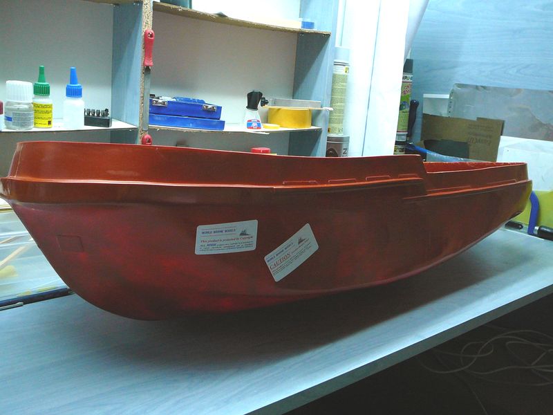 Objednal jsem laminátový trup, stavební materiál (pár plastových desek a překližku) a především jsem objednal plán i s rozkreslenými stavebními díly nádstavby, paluby. Další věcí, kterou jsem objednal, byly hřídele, dýzy, spojky. Přidal jsem i nějaké obrázky skutečné lodi, vzhledem k tomu, že jsem obrázků na internetu mnoho nenašel. Věděl jsem, že to nebude nic levného, ale doufal jsem, že za tuto cenu dostanu i adekvátní kvalitu. Poštovné v ceně 86 liber jsem jakž – takž přešel.