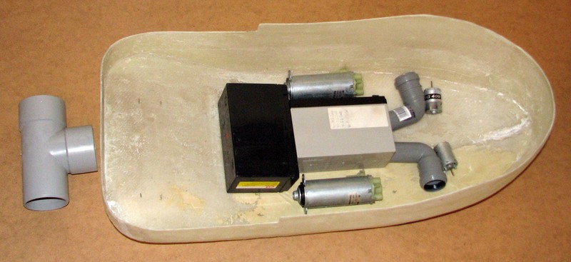 Po zvážení všech pro a proti, jsem se nakonec rozhodl pro „klasiku“. Pohon budou obstarávat dva výkonné nízkoobrátkové motory BOSCH 12V (cca 4500-5000ot./min.). Jejich výkon na dvojici lodních šroubů o průměru 60mm budou přenášet dvě lodní hřídele bez převodovek. Lodní šrouby budou uloženy v pevné dýze. Za každou dýzou bude dvojice kormidel. Na přídi bude remorkér vybaven příčným pohonem, který bude vytvořený ze dvou samostatných tunelů. Každý tunel bude mít jeden šroub, který bude poháněný jedním motorem MIG 400 6-12V. Dále bude remorkér vybaven dvěma funkčními nezávislými navijáky vlečného lana. Jeden na zádi a druhý na přídi.
