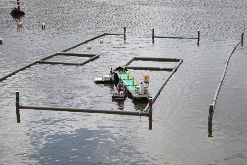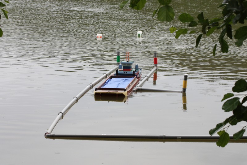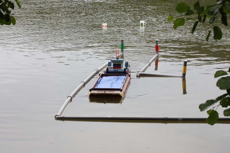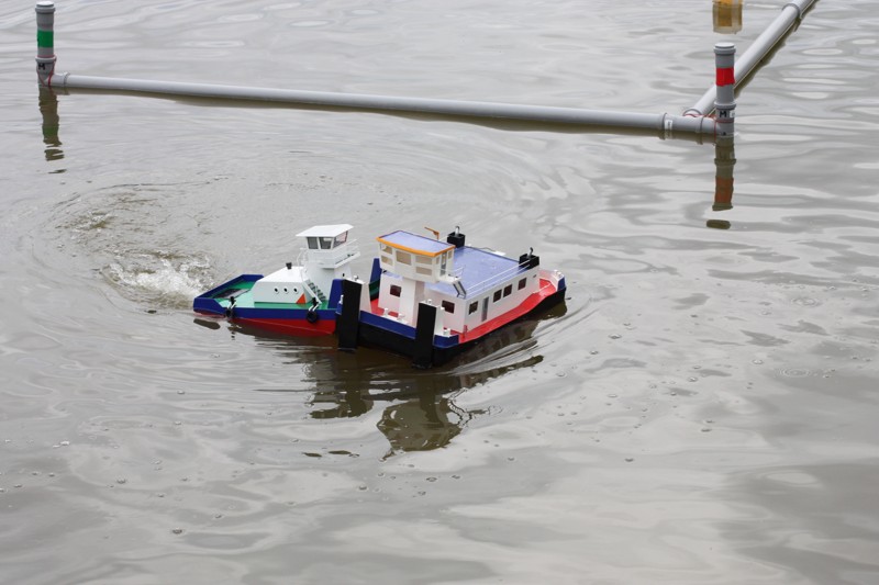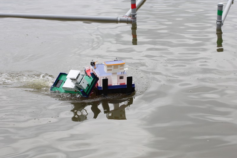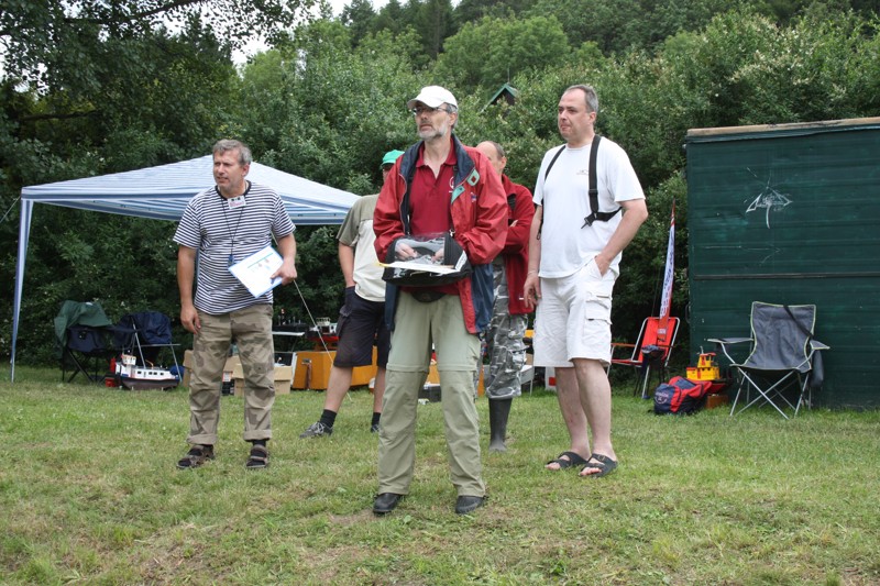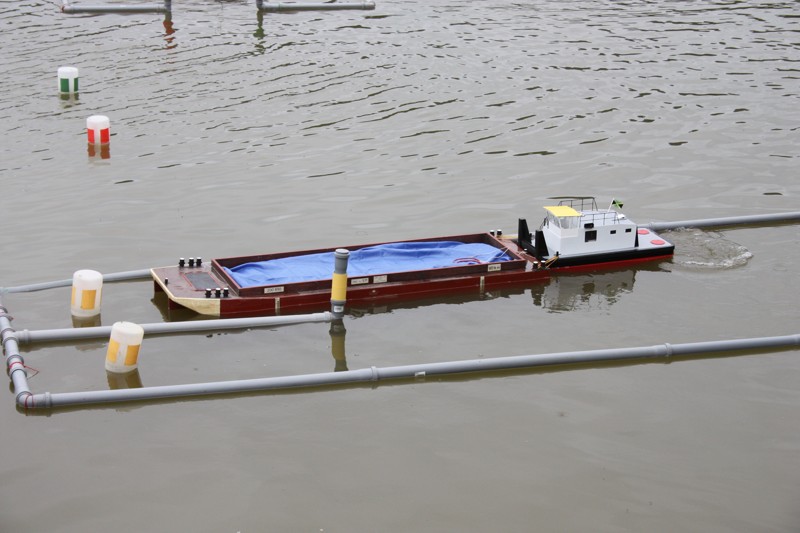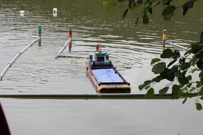 V sobotu ráno ještě trochu poprchávalo. Start jsme odložili asi půl hodinky, což nám poskytlo dostatek času na seznámení soutěžících s tratí a tradiční poradu rozhodčích. A pak to propuklo! Od rozhodčích se ozývají povely „Příprava na start!“, první protůrování motorů, kontroly výchylek kormidel a za pár minut na trať vyplouvají první soulodí. Hned bylo vidět, že hlavním nepřítelem nebudou překážky samotné, ale vítr a série tří branek v jedné přímce jejichž osa vedla takřka kolmo na směr ze kterého vanul vítr. Trestné body mezi bójkami snad sbíral každý. Navíc při nájezdu do překážek směrem ke břehu, vítr vytvářel iluzi, že vane z pravé strany a opak byl pravdou. Nachytali se na to snad všichni kapitáni. Vítr měnil svoji intenzitu naprosto nevypočitatelně a nelítostně zasahoval. Budiž přičteno ke cti všech kapitánů, že nikdo nenadával a všichni to vítali jako zpestření soutěžních plaveb a výzvu poprat se s větrem. Vítr byl ale tvrdý soupeř a občas i nejsilnější remorkéry v těžkém tug towingu měly co dělat, aby Sofii vůbec utáhly. Dalším oříškem byl navigační test mezi skupinou pěti skalisek při levém okraji soutěžní tratě. Kapitáni nevěděli co dřív, zda uhýbat skaliskům a nebo koukat do plánku kudy se vlastně pluje.