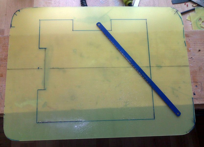 Nastal ten správný čas na palubu. Je vyříznutá z laminátové desky o síle 1 mm a slícování trvalo skoro celý den. Po vyříznutí montážního otvoru a přesném slícování, jsem otvor olemoval proti vodě. S velkou pompou a uspokojením jsem na palubu, ještě nezalepenou, nasadil nástavbu. Ke své hrůze jsem zjistil, že celá nástavba je „do vrtule“. Na desce stolu byla rovná, takže chyba byla v palubě! Kontrolou jsem zjistil, že celý trup se úhlopříčně zkroutil. Po rekapitulaci všech prací jsem zjistil pravděpodobnou příčinu. Při řezání předního límce a prostoru pro kotvu, se změnilo pnutí v laminátu a vznikla tím letecká součástka.