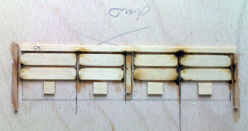 Nejdříve jsem si vyrobil přípravek podle plánku a pustil se do letování. Po zabroušení bambulí z cínu (neumím pořádně letovat) a následném opláchnutí v jarové vodě, jsem zábradlí nastříkal základem a vrchní bílou barvou. Další nechám na příští den.