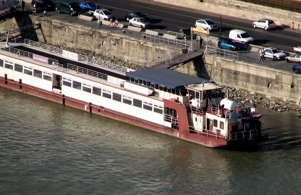 Jinak hladinu Dunaje v Budapešti brázdí jen osobní vyhlídkové a výletní lodě nejroztodivnějších vzhledů. Mezi nimi lze přeci jen občas zahlédnout něco zajímavého. Třeba klasické nákladní lodě, čekající až je někdo naloží, nebo okřídlenou loď ze Slovenska a asi největší kuriozitou byl původně tlačný remorkér přivařený k nákladní vaně, která byla přestavěna na vyhlídkovou loď? Nebo něco podobného.