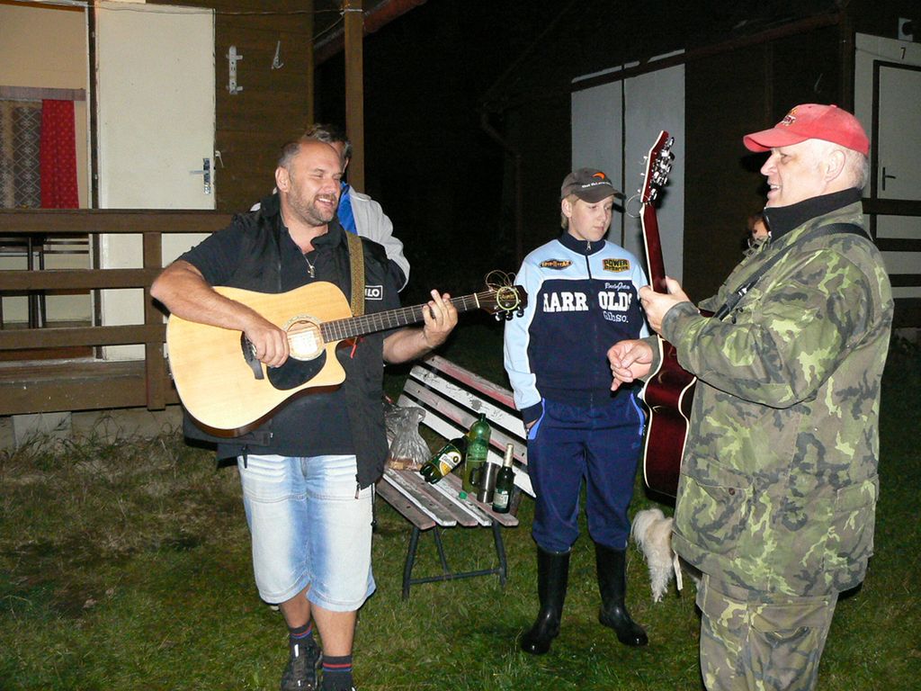 Za tmy stavět celý TT cirkus nemá cenu a tak jsme páteční večer věnovali družné zábavě za zvuku kytar (MSOB a RomanT), popíjení zlatistého moku, pojídání všelijakých dobrot a pod., což nám hodně zvedlo náladu. Dokonce tak, že někteří tvrdili, že brzy ráno vstanou. A vstali 🙂