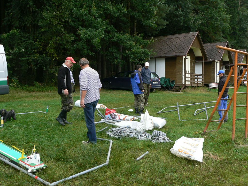 Sobotní ráno bylo ve znamení „kvapíku“ stavby tratě. Všichni jsme už ostřílení harcovníci a tak nebylo třeba nic moc vysvětlovat. Voda nebyla zrovna nejteplejší a tak jsme se Romanem při kotvení překážek v broďácích vystřídali. Režie startů se ujala Moni a pomalu se roztáčel kolotoč soutěžních plaveb. Účast byla nižší, ale přesto se dalo dohromady 28 soutěžních týmů.