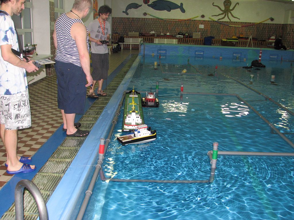 V bazénu se také poprvé objevil nový remorkér Knedlíček, který staví kapitán Jan Jelínek. Bude to krásný konstrukční kousek, kterému dvojice „Z-pohonů“ propůjčuje skvělou manévrovatelnost a tažnou sílu. Pravda vzhled byl zatím takový aby vyhověl pravidlům pro TT, ale na lepších nástavbách se prý usilovně pracuje.