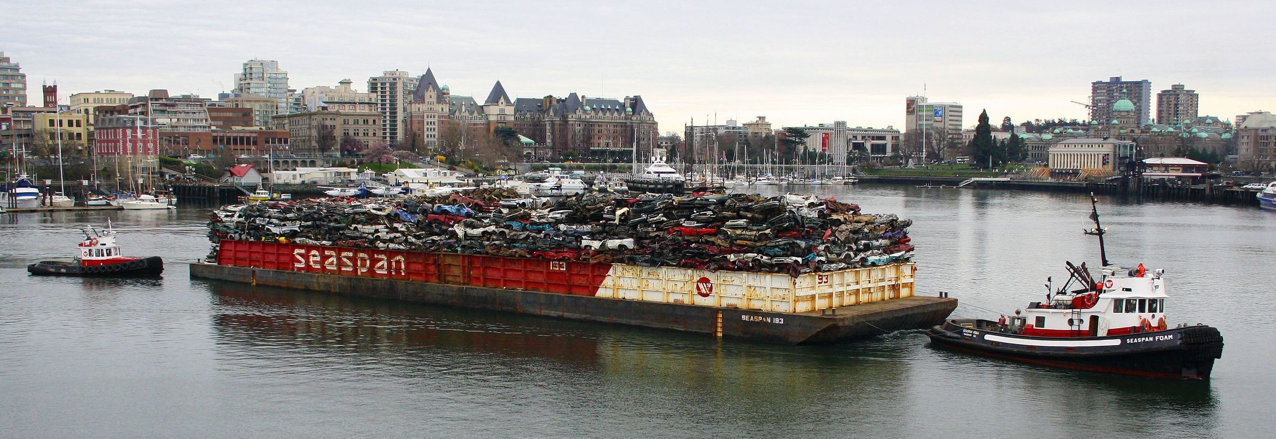 Druhý snímek (Zdroj a author: http://modeltugforum.com/index.php?action=dlattach;topic=1192.0;attach=66336;image)jsem našel na známých stránkách www.modeltugforum.com. Dva vlečné remorkéry táhnou nákladní vanu. Na tom není nic až tak zajímavého jako obsah – vlastní náklad. Plovoucí vrakoviště jsem ještě nikdy neviděl. 🙂 Jako vlek pro náš tug towing by to bylo opravdu hodně zajímavé a i realizovatelné. stačí sehnat dostatečný počet angličáků a pak do nic chvilku mlátit kladivem 🙂