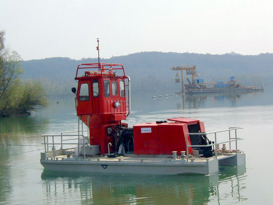 Při spatření malého tlačáku, který slouží v pískovnách, na vodních stavbách a podobných „přicmrdávkách“, jsem měl vybráno. Začalo shánění fotek a dokumentace. Docela jsem se zklamal, protože jsem na netu o této lodi nenašel vůbec nic. Sehnal jsem jen pár fotografií, které jsem použil pro nakreslení plánku. Předloha je vlastně tlačný katamarán s motorem TATRA, který pohání „Z“ pohon. Toto uspořádání jsem okamžitě zamítnul pro svou nákladnost a rozhodl jsem se loďku postavit „ze šuplíku“. Plánek jsem rozkreslil na měřítko 1/25, aby mi tlačáček šel k TR-550 a rozestavěné TR-31. I v tomto měřítku budu mít docela honičku všechno do lodě schovat. Její délka bez tlačných koz vychází na 35cm!