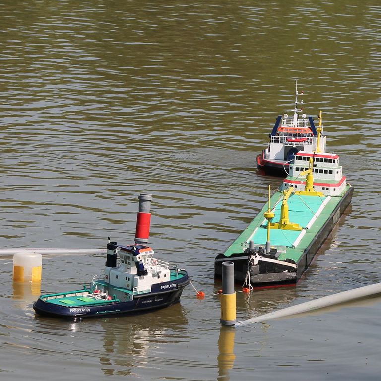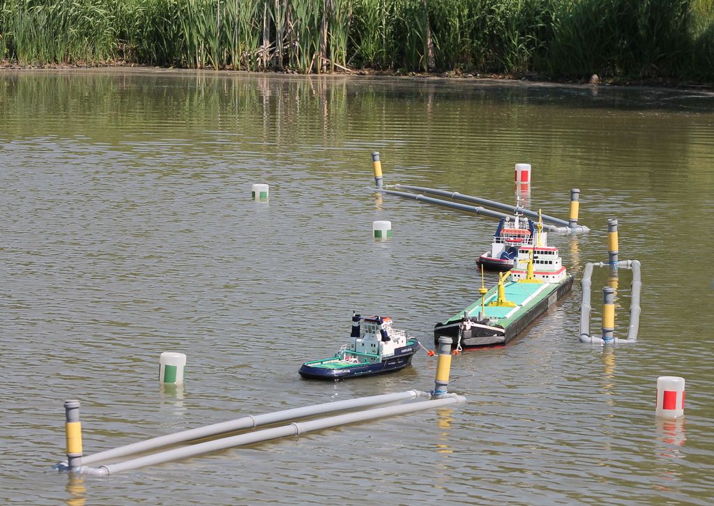 Oproti Jindřichovu Hradci byla trať přeci jen stísněnější a na počtu trestných bodů to bylo znát. Pro vlečné remorkéry byl nejnáročnější manévr přichystán na začátku a na konci soutěžní plavby. Z přístavního doku bylo třeba vyplout na zpětný chod. Jenže na dok hned navazoval plavební kanál, kde se už počítaly trestné body. Závěrečné přistání bylo ještě náročnější, protože bylo spojené s obratem. Po stranách moc místa rozhodně nebylo. Polymorf je sice užší než Velký Kačer, ale zase je o pár centimetrů delší. Zkrátka s oběma vleky to nebylo snadné. Velkého Kačera remorkéry vlekly v prvním a třetím kole, Polymorf byl použit v kole druhém. Kromě již zmiňovaného přístavu na kapitány čekalo zdymadlo, rejda v podobě těžební plošiny, plavební kanál, příbřežní plavba a několik branek. Navigačně opět jednodušší trať, ale trochu delší a tomu odpovídaly i časové limity. Tlačné remorkéry čekala tři kola stejným kurzem. Pro dvoušroubé remorkéry byl asi nejnáročnější manévrem vyvázání na rejdě ke dvěma bójím. Jednošroubé zase musely umístit „náklad“ na přesně určené místo nákladní vany.