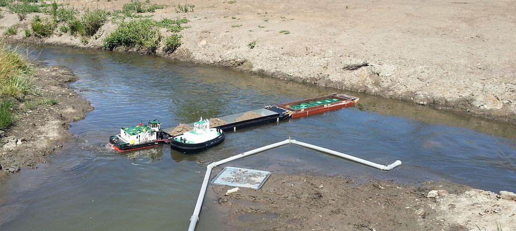 Na horním toku u slepého ramene bylo jediné místo, kde se dalo s vlekem otočit. Tažný remorkér musel celé soulodí vytáhnout až za mělčinu, zadní následně soulodí stáhl do ústí slepého ramene. Vlek se díky proudu začal obracet. V tom okamžiku jej vlečný remorkér musel obeplout a zadní remorkér začal tlačit do zádě proti proudu aby ji nesnesl na mělčinu. Souhra byla nezbytná, jinak vlek skončil nasednutím na mělčině. Když jsme manévr zvládli započala plavba po proudu. Teď se role remorkérů obrátily. Zadní neustále musel brzdit a přitom stahovat záď k levému či pravému břehu. Vlečný remorkér musel při tom táhnout a přesně směrovat příď vleku. Proplout branku u přístavu nebylo vůbec snadné. Soulodí plulo docela rychle a o nějakém zastavení či opravné manévru nemohla být ani řeč. Vše bylo potřeba dávat z první. Obrat na dolním toku v tůni už byla třešinka na dortu! 🙂