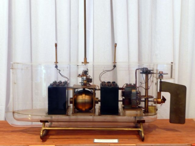 Je až neuvěřitelné, jak primitivními prostředky Tesla dokázal svůj člun spolehlivě ovládat. Z dnešního pohledu se jednalo o jednokanálovou (jednopovelovou) soupravu. Signál zachytila anténa a prvkem, kterým se detekoval příchod signálu byl koherer (pokud nevíte jak fungoval, hledejte na Internetu). Když byl vyslán signál, koherer se stal vodivým, tím se uzavřel okruh a mechanický vybavovač nastavil jednu z několika kombinací kontaktů, které se opakovaly dokola. Vysláním několika povelů po sobě, tak bylo možné dosáhnout požadované změny směru, zastavení, svícení a pod. Ve své době naprosto geniální! Jako zdroj elektrické energie byly na palubě instalovány čtyři akumulátory. Jak často je musel Tesla dobíjet se nikde neuvádí. 🙂