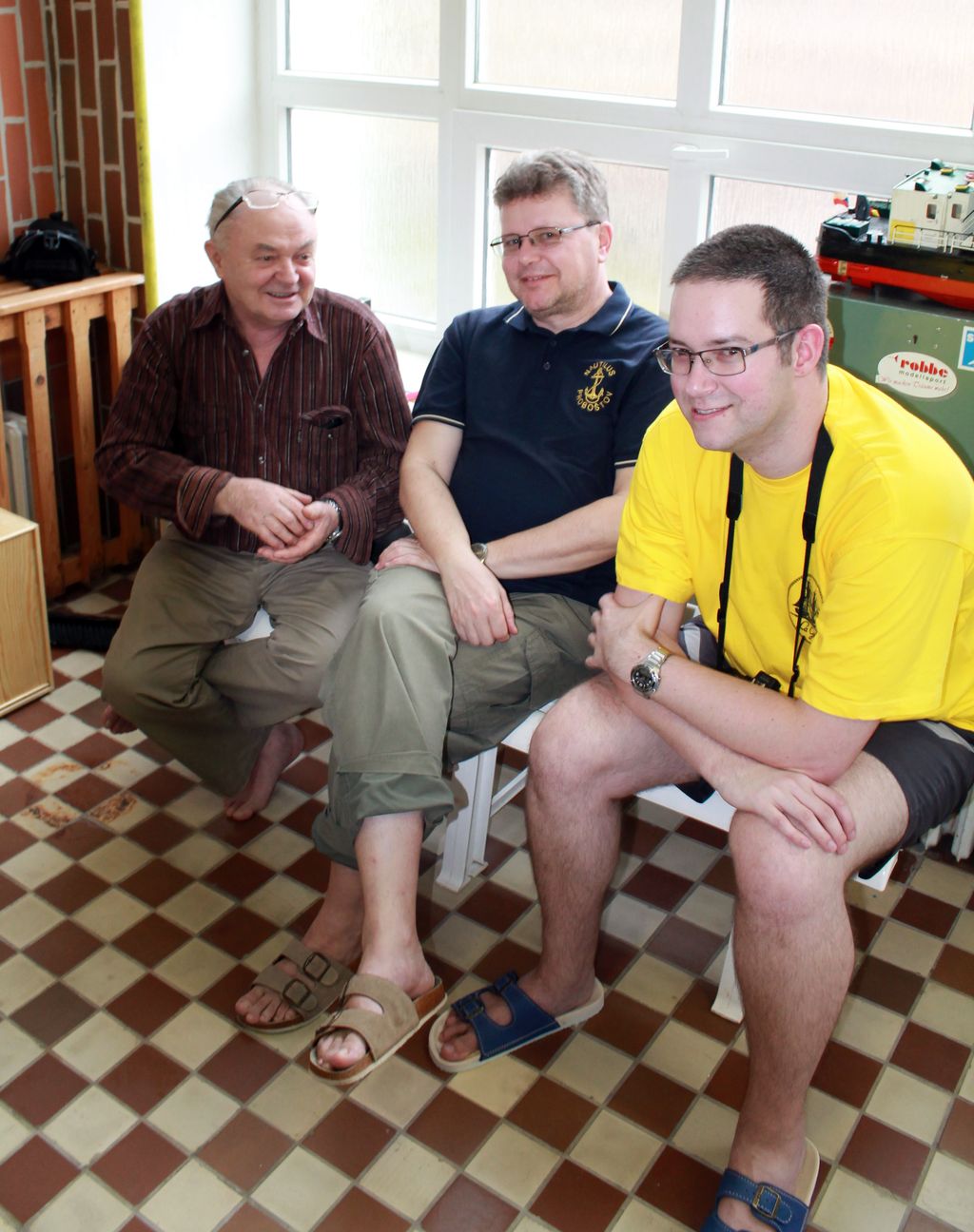 V sobotu se na nás přijeli podívat vzácní hosté, Honza Červíček (zcela vlevo), jehož lodní šrouby má nejeden remorkér v TT a Bambinot (vpravo)
