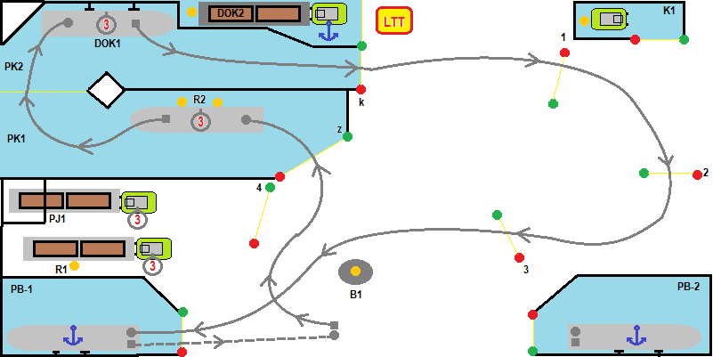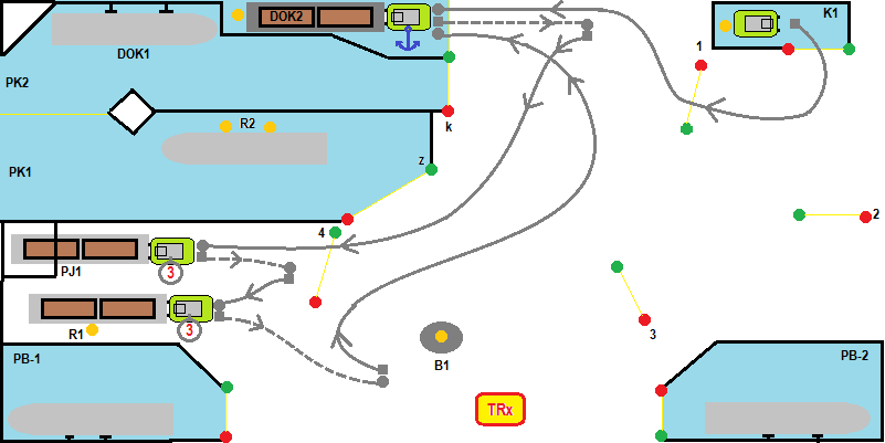 Soutěžní plavba začíná zvoláním rozhodčího „PŘÍPRAVA NA START“. Kapitán spustí remorkér na vodu v prostoru K1, přídí směrem k zaústění. Připravenost k plavbě ohlásí zvoláním „START“. Rozhodčí vydá povel „START“ a současně spustí časomíru. Tlačný remorkér samostatnou plavbou vypluje z K1, propluje branku 1 a vpluje do DOK-1. Zde se přiváže k připravenému vleku. Poté vypluje na zpětný chod z DOK-2, po vyplutí provede změnu směru plavby a pokračuje do branky 4. Následně provede manévr přistavení vleku k nakládce pod portálový jeřáb PJ1. Vpluje pod portálový jeřáb a zahájení manévru ohlásí zvoláním „STOP“. Po dobu 3 sekund se nesmí dotknout žádné překážky. Když se dotkne, považuje se to na neprovedený manévr. Rozhodčí odpočítá dobu 3 sekund a ukončení manévru ohlásí zvoláním „HOTOVO“. Soulodí vypluje z překážky na zpětný chod, provede změnu směru a pokračuje na rejdu R1, kde provede manévr REJDA po dobu 3 sekund. Od rejdy se odpoutá na zpětný chod, provede změnu směru a vpluje do DOK-2, kde provede přistání ke žluté bóji. Příď vleku se musí dotýkat žluté bóje. V okamžiku kdy se vlek dotýká žluté bóje a kapitán chce soutěžní plavbu ukončit zvolá „STOP“. Rozhodčí zkontroluje, zahájí odpočet 3 sekund. Pokud se během odpočtu vlek od bóje neodpoutá. Zvolá „STOP“ a současně zastaví časomíru. Žlutá bóje se nesmí dotknout překážky, pokud ano, rozhodčí napíše dotek. Tím soutěžní plavba končí.